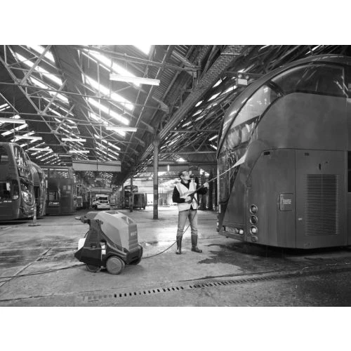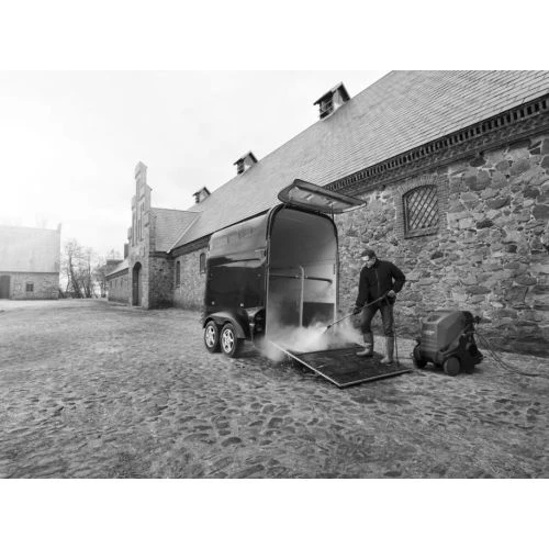Le nettoyeur bénéficie d’un système d’avertissement qui limite les temps morts. Son système de chauffe-eau EcoPower économique en carburant procure un nettoyage rapide et efficace. Il est équipé d’un moteur à 4 pôles et d’un système d’activation par débit Flow Activated qui offre une convivialité et une fiabilité accrues. Utilisable de manière intensive, ce nettoyeur bénéficie d’un châssis révolutionnaire à 4 roues qui garantit son déplacement. Il dispose d’une plateforme arrière qui permet de recevoir un ou deux bidons de détergent.