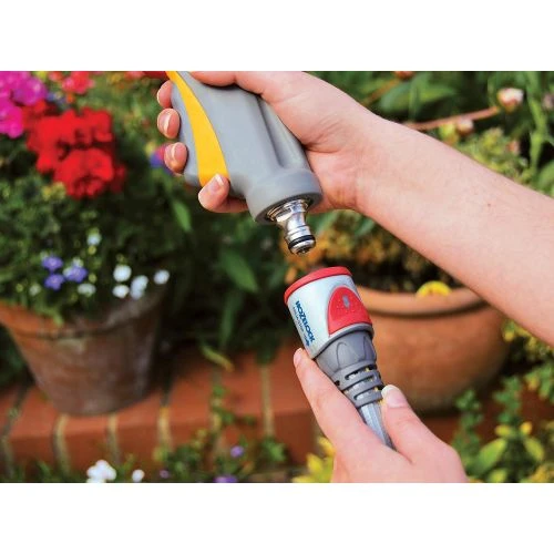 Le raccord premium rapide et robuste Hozelock AquaStop conçu pour les tuyaux de diamètre 12,5, 15 et 19 mm, recommandé du côté pistolet d’un tuyau d’arrosage. Le manchon en zinc moulé sous pression fait du raccord AquaStop Pro Metal un accessoire robuste, durable et résistant aux rayures. Sa valve interne coupe le débit d’eau en cas de retrait de l’accessoire raccordé. Toucher doux pour plus de confort. Extrémité souple pour éviter le vrillage.