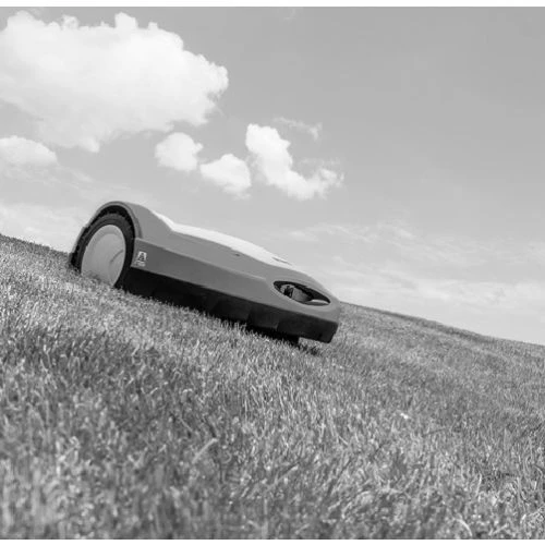 - À l’aide du capteur d’inclinaison, le robot de tonte iMOW® ajuste automatiquement sa vitesse sur les terrains accidentés, de manière constante.