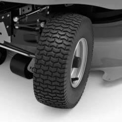 Les gros pneus Turf du tracteur tondeuse Stihl ménagent le gazon. Ils ne laissent pratiquement aucune trace grâce à leur épaulement arrondi.