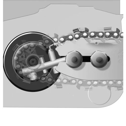Avec le tendeur de chaînes rapide Stihl breveté, la chaîne peut être tendue sans outil, uniquement avec une molette de réglage, après avoir desserré le capot du pignon de chaîne.